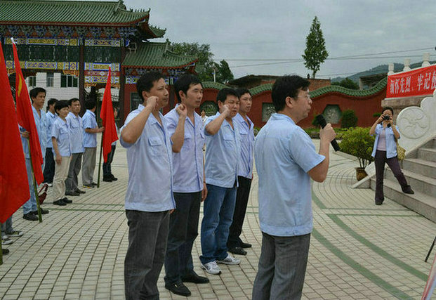 宣誓過后,喬總講話說:在黨的91歲生日之際,我們?cè)诖酥販馗锩鼩v史,緬懷革命先烈的豐功偉績(jī)。在中國(guó)共產(chǎn)黨的英明領(lǐng)導(dǎo)下,我們從一個(gè)積弱積貧、受人欺凌的國(guó)家,發(fā)展到一個(gè)經(jīng)濟(jì)繁榮、政治穩(wěn)定、文化昌盛,令世人尊敬的國(guó)家。特別是近期 “神九上天、蛟龍入海”等驚世成就,充分體現(xiàn)出我們黨的優(yōu)越性和先進(jìn)性。雖然,我們這個(gè)國(guó)家,還有許多問題,但是我們堅(jiān)信,我們黨有能力,也有魄力解決好這些問題,在共產(chǎn)黨的帶領(lǐng)下,中國(guó)的未來會(huì)更加美好,人民的生活會(huì)更加幸福。
